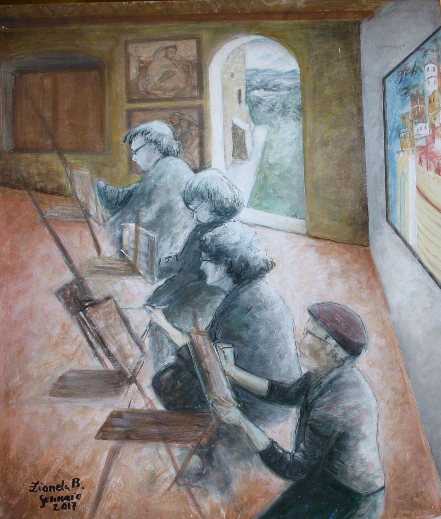 Alcune allieve tratte durante il corso di pittura alla Casa di Giotto a Vespignano, Vicchio.