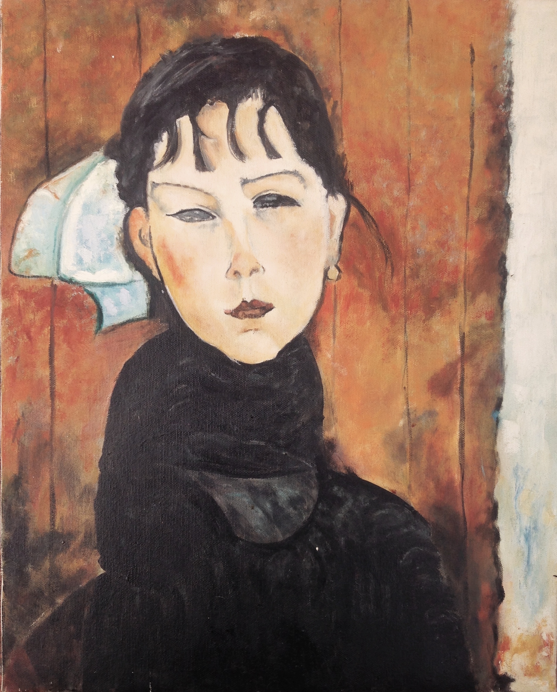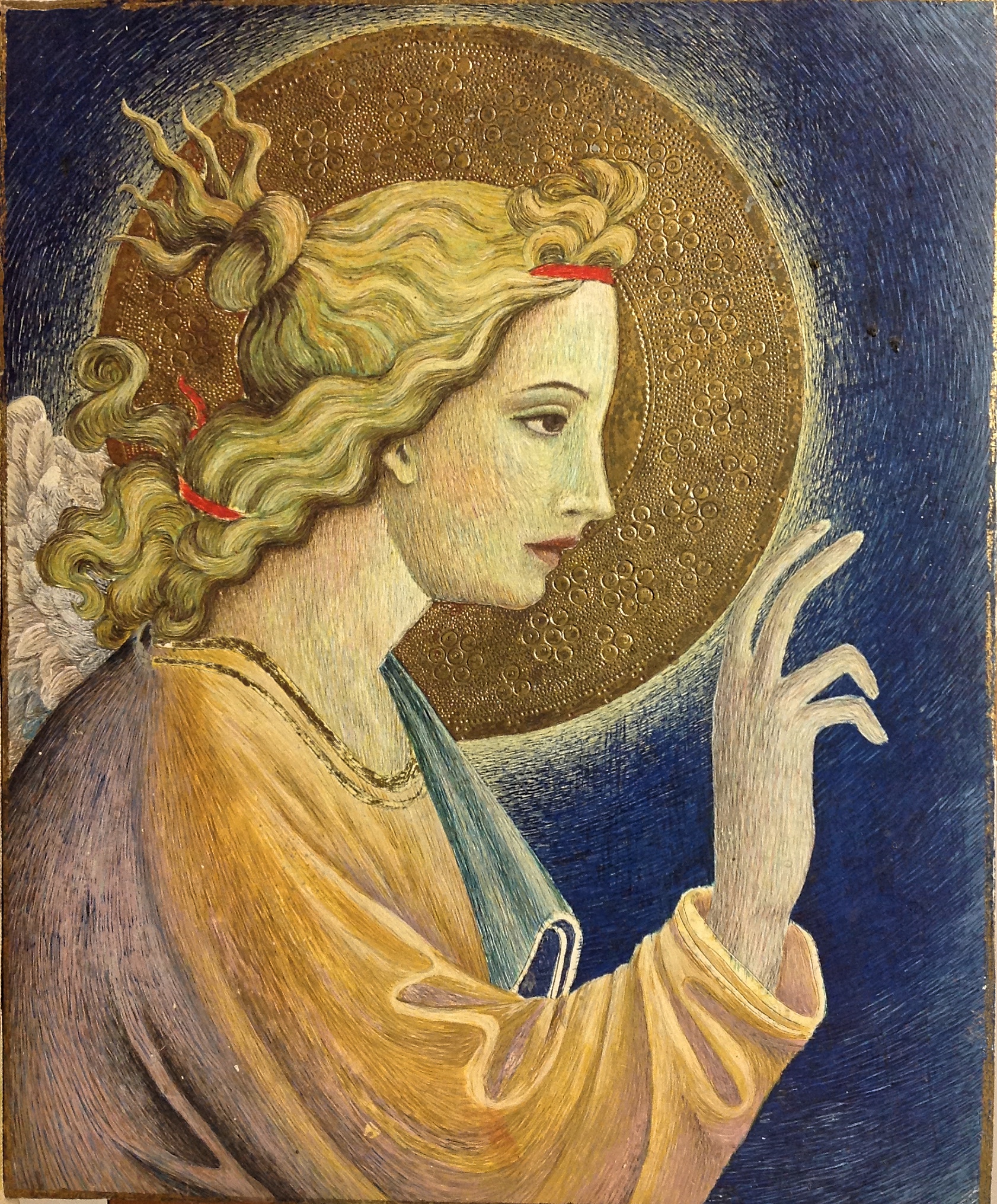 Copying exercise for the restoration course taken from a photograph of an angel painting.