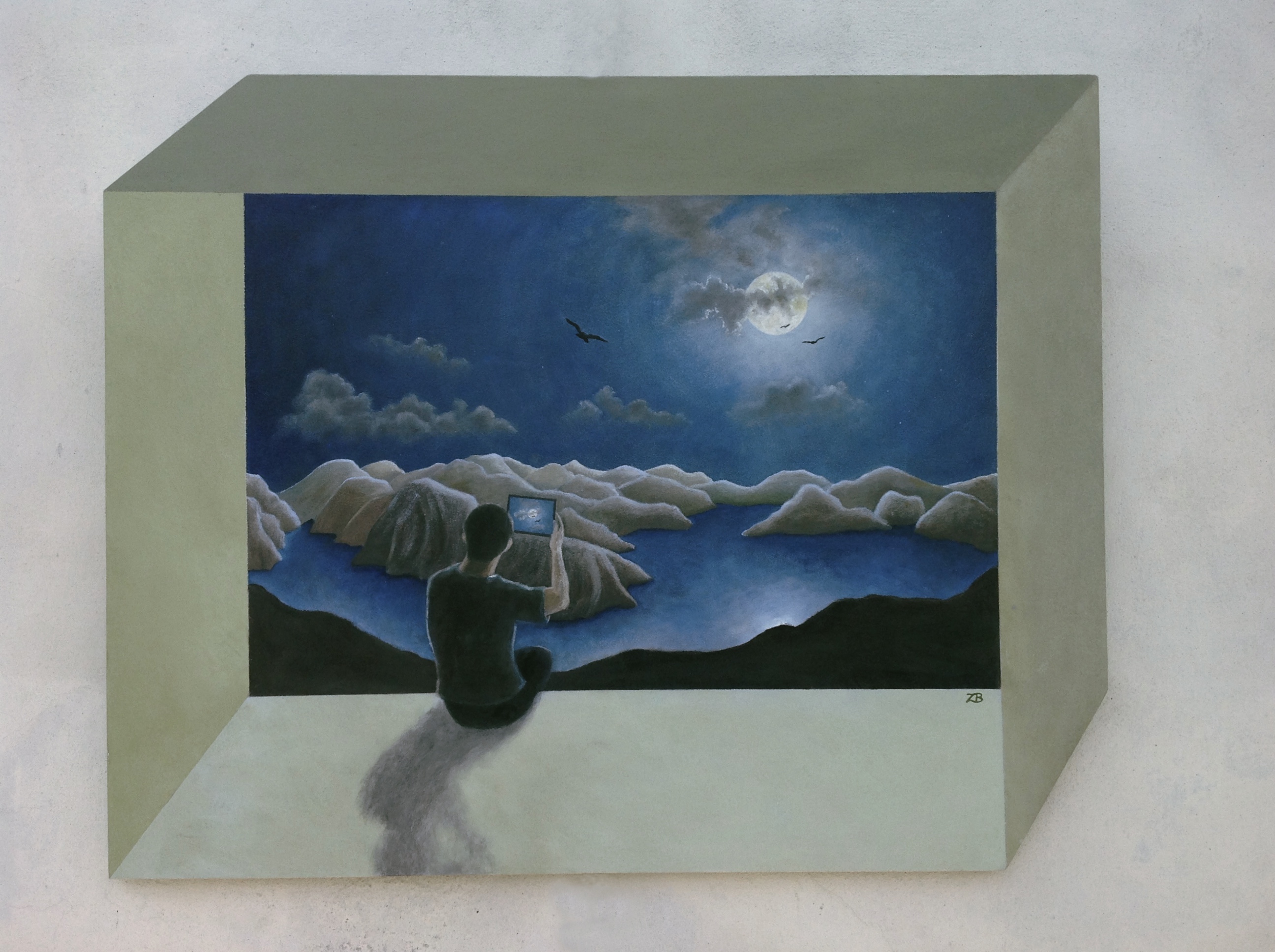 Painting from the "Boxes" series - series with which I intend to represent that everything is contained in another more capacious that I represent here in the form of a box.