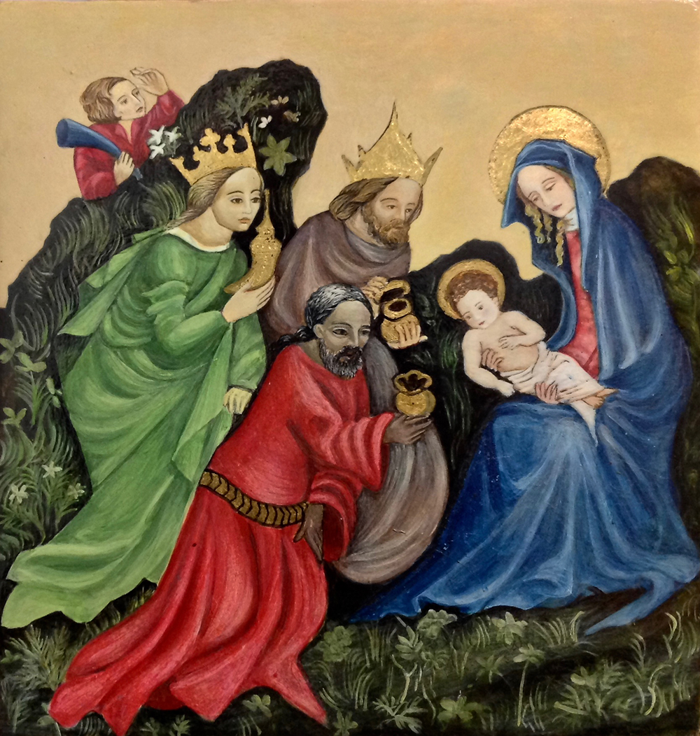 Egg tempera and gold leaf on wood.