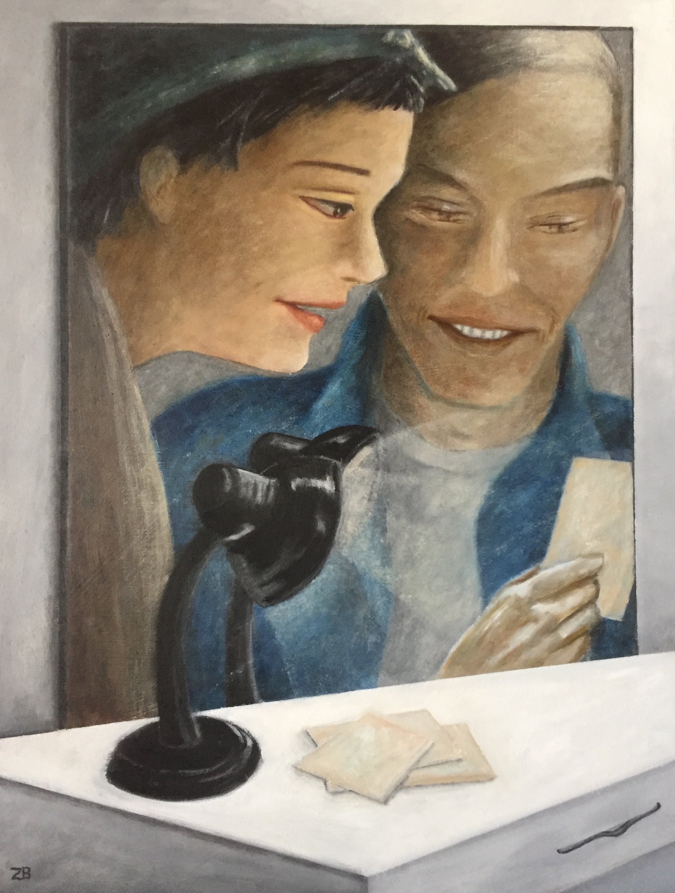 The memory printed on the photo makes them smile.