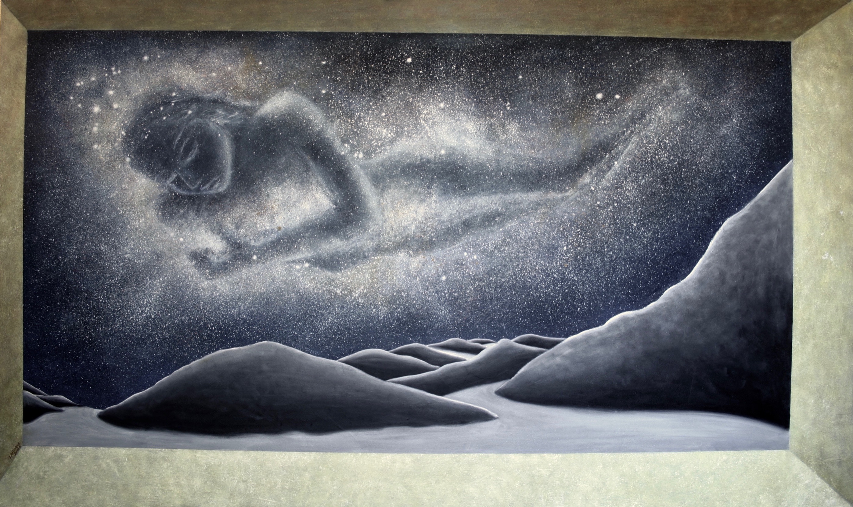 Terzo dipinto della serie Via Lattea, la nostra galassia con forma di donna per significare che ci porta dentro di sé come una madre porta nel grembo