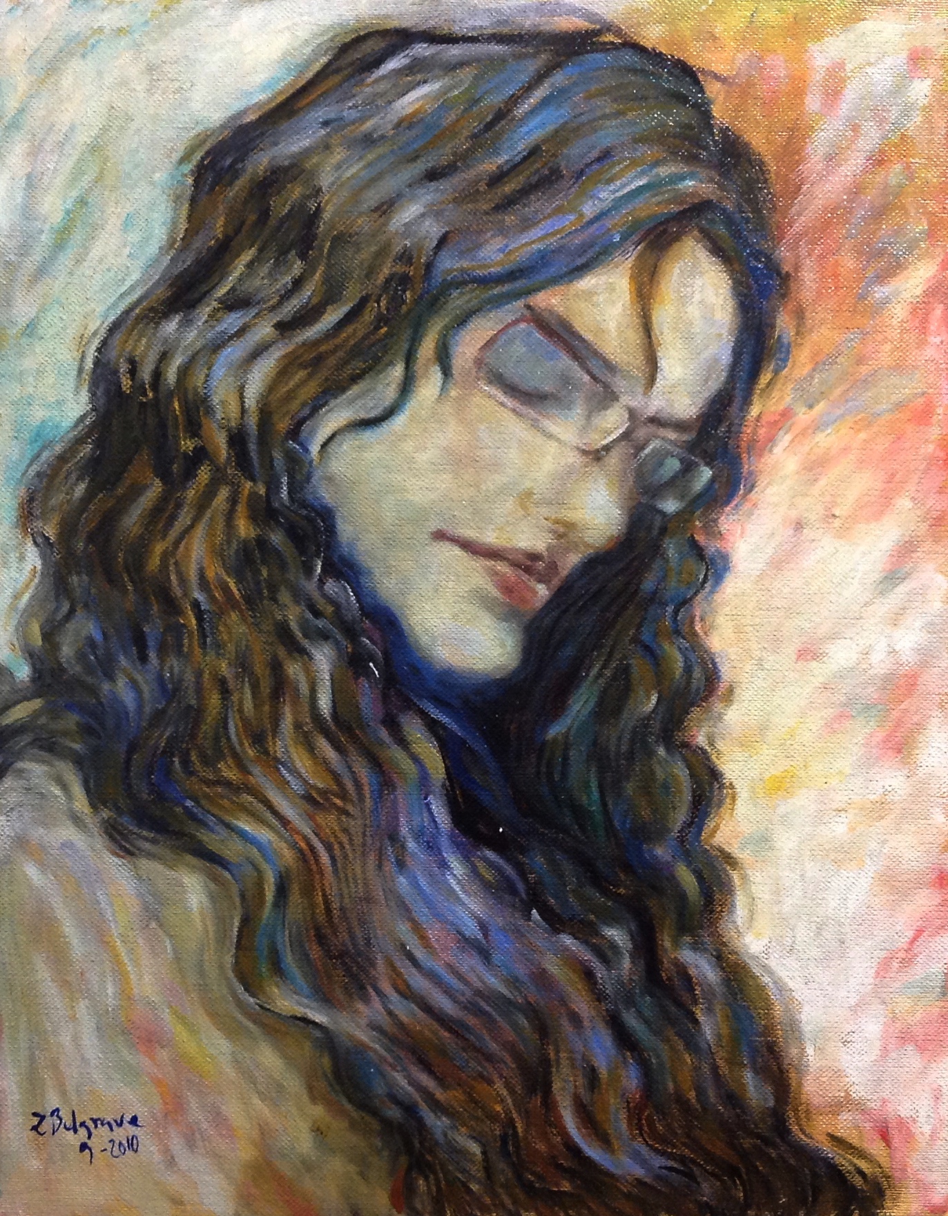 Second painting in the "Boxes" series: she is immersed in deep sleep.